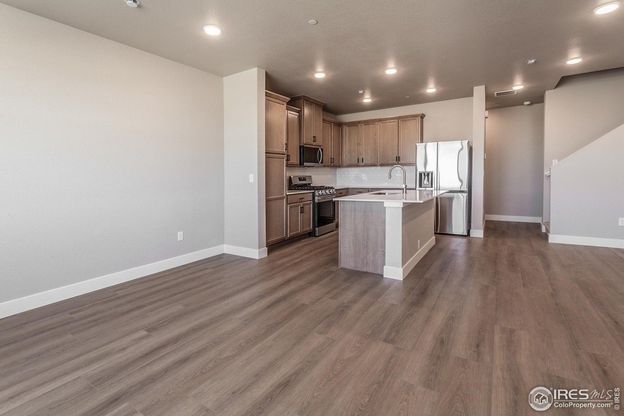 Telluride 1A by Hartford Homes! Townhome w/ open-concept main floor. Fenced courtyard. This middle-unit townhome offers 3 bedrooms, 2 bathrooms, and a convenient powder bath on the main level. The kitchen is equipped with stainless steel appliances, including a electric range, microwave, dishwasher, and refrigerator, paired with Biscotti maple cabinetry and quartz countertops. Vinyl plank flooring runs through the entry, kitchen, dining, bathrooms, laundry, and living room. All bedrooms are located on the upper level, alongside a laundry room complete with a washer and dryer that are included. Additional features include central A/C, a garage door opener with keypad, and 2 in white faux window blinds. PHOTOS FROM PREVIOUSLY BUILT HOME AND THEREFORE MAY DEPICT DIFFERENT FINISHES. ASK ABOUT CURRENT LENDER OR CASH BUYER INCENTIVES.