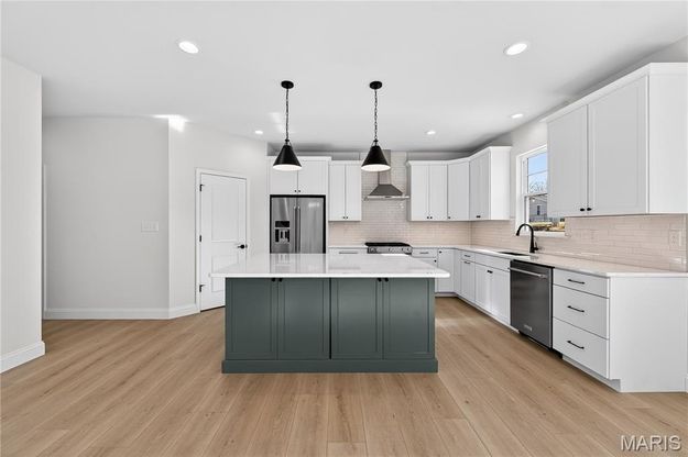 MOVE IN READY! Be the first owner! Stunning, new construction by Fischer and Frichtel in Ryehill Manor in St. Peters. This dynamic 2 story home will wow you! The curb appeal is impressive with board and batten siding, brick, arch shingles, metal accent roofing, carriage style garage door, full sod, landscape and lawn irrigation. Features inc 3 bedrooms, 2.5 baths, 2,468 sq ft, 9 ft ceilings on the main floor, lux vinyl plank flooring throughout the main level, Flex Rm/Dining Rm, side staircase design, wr iron stair spindles, main flr Laundry, 2 panel doors, 5.25 inch baseboards, 42 inch Shaker style White cabinets with crown, island with seating bar, soft close doors and drawers, dovetail drawer construction, quartz countertops, tile backsplash, walk in pantry, st steel KitchenAid appl, gas range, chimney style hood, micro, refrig, dishwasher, double door entry to the Primary Suite, walk in closet, cultured marble shower, free standing soaking tub, raised height dual vanities, large secondary bdrms, spacious Loft, HVAC zoned system, 50 gal water heater, rough in bath and a 12x12 composite deck with steps to a 14x12 patio. The garage has added depth and an insulated garage door with opener. This single entrance neighborhood offers easy access to Hwys 70 and 370, shopping, restaurants, services and The St. Peters Rec Plex. Ryehill Manor residents will receive a 3 yr paid membership to the spectacular St. Peters Rec Plex.