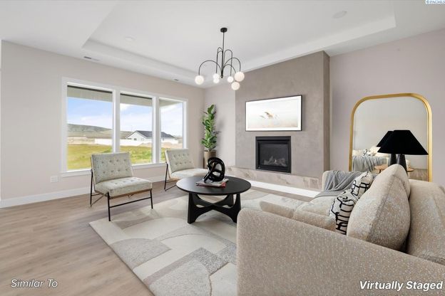 Welcome to South Orchard and Viktory Homes...where everyday life feels elevated. Set in one of South Richland’s most desirable and thoughtfully planned communities, this Viktory Homes residence offers a lifestyle defined by comfort, connection, and effortless luxury. From the moment you arrive, there’s a sense of calm...wide streets, nearby trails, and a neighborhood designed for living well. Inside, the home opens with soaring ceilings and natural light that pours through expansive windows, creating a bright, welcoming atmosphere that instantly feels like home. The open layout is designed for how people actually live and spaces that flow easily from one moment to the next, whether you’re hosting friends, enjoying a quiet evening in, or simply starting your day. At the heart of the home, the chef-inspired kitchen becomes the gathering place. With premium appliances, abundant cabinetry, beautiful finishes, and a statement island, it’s a space made for connection; morning coffee, shared meals, and celebrations big and small. Just beyond, the living area offers warmth and comfort with a fireplace and walls of windows that frame peaceful views and bring the outdoors in. The primary suite is thoughtfully positioned as a private retreat, offering a true escape at the end of the day. The spa-like bathroom features a soaking tub, walk-in shower, and elegant finishes, while the generous walk-in closet adds both function and ease. Additional bedrooms provide flexibility for guests, creative space, or everyday living needs and is designed to adapt as life evolves. One of the most special features of this home is what lies beyond it. Backing to green space, you’ll enjoy open views, added privacy, and the rare luxury of no backyard neighbors—perfect for quiet mornings and peaceful evenings. Living in South Orchard means being moments from Badger Mountain trails, wineries, parks, top-rated schools, and the growing amenities of Badger Mountain South—all while enjoying a neighborhood that feels connected yet serene. This is more than a home. It’s where lifestyle, location, and thoughtful design come together—crafted with care by Viktory Homes. *Photos are of a previously built home. Finishes will vary.
