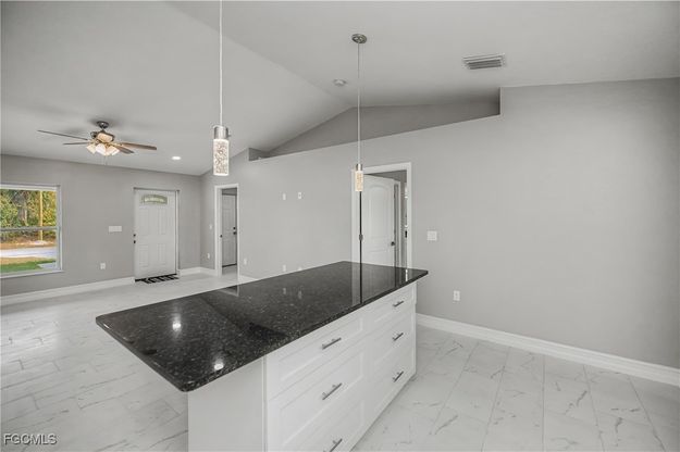 This beautiful new construction home is located in a quiet and desirable area of Port LaBelle, surrounded by wooded lots that provide added privacy and a much sought-after peaceful setting. This well-built 3-bedroom, 2-bath residence boasts any number of designer features as well as a durable metal roof and sturdy impact-resistant windows providing both style and long-term protection. The home includes a 1-car garage and a separate laundry room which provides additional storage space. Tile flooring is found throughout for easy maintenance while vaulted ceilings and contemporary lighting fixtures showcase the home's modern ambiance. Thoughtfully designed with many upgrades, the home's open and functional layout is ideal for everyday living and entertaining. Enjoy the tranquility of a low-traffic neighborhood while still being conveniently located near local amenities, schools, and shopping. This is a perfect opportunity to own a well-built concrete block home in a truly serene environment.