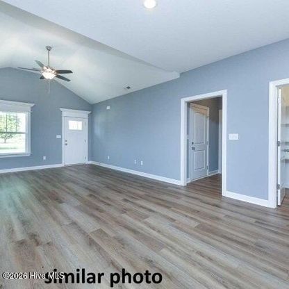 The Dutton model offers a thoughtfully designed open floor plan featuring 3 bedrooms and 2 full bathrooms. Luxury vinyl plank flooring highlights the main living areas, with carpeted bedrooms. The spacious living room opens seamlessly to the kitchen, complete with granite countertops, stainless steel appliances, and a custom pantry for added storage. Enjoy relaxing on the welcoming front porch, with a 12x12 patio off the back for outdoor living. Additional features include an attached garage and functional layout. Photos are similar to home being built. Breaking ground in Feb. for a summer completion. Call today.