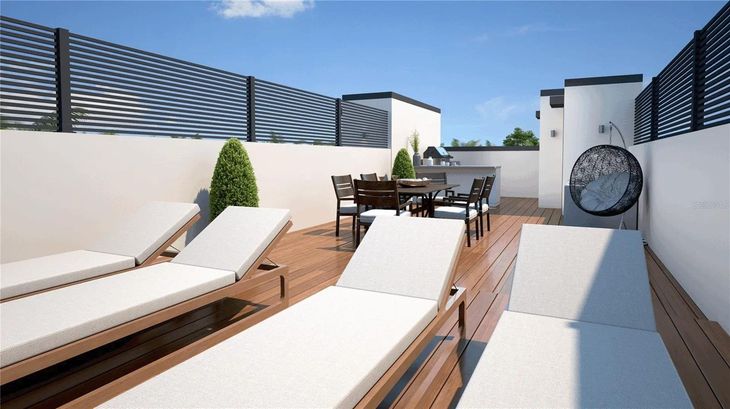 Under Construction. Under Construction. ***Offering up to $21,000 towards closing costs for qualified buyers ***Experience elevated urban luxury at Sunset Palms Townhomes, a boutique collection of just five fee-simple residences located in St. Petersburg, ideally positioned in the heart of one of Florida’s most vibrant and walkable urban environments. Just minutes from Downtown St. Petersburg, residents enjoy easy access to award-winning restaurants, cafés, fitness studios, shopping, galleries, and cultural destinations, with the St. Pete Pier, waterfront parks, and Tampa Bay’s iconic marina all nearby, perfect for morning walks, sunset strolls, and an active coastal lifestyle. World-renowned Gulf beaches are a short drive away, offering effortless access to white-sand shores while maintaining the convenience of city living. Each three-story residence features 3 bedrooms, 3.5 bathrooms, 2,053 sq ft of refined living space, and 3,198 sq ft under roof, designed with intentional architecture and elevated finishes that far exceed typical townhome standards. At the heart of the home is a show-stopping designer kitchen crafted for both everyday living and upscale entertaining, showcasing custom flat-panel wood cabinetry extending floor to ceiling, premium stone countertops, and a dramatic oversized waterfall-edge island with generous seating. The kitchen is equipped with built-in appliances, including a wall oven, sleek cooktop with custom vent hood, panel-ready refrigerator, and built-in wine refrigerator, delivering a seamless, high-end aesthetic. Thoughtfully integrated open wood shelving, designer brass pendant lighting, and layered recessed lighting elevate the space, while wide-plank flooring and large windows flood the home with natural light and create an effortless flow into the open living and dining areas. Additional highlights include a private 1.5-car garage, 2–3 on-site guest parking spaces per unit, a rare luxury in this urban setting, and a private front yard that can be fenced, ideal for pets, or outdoor lounging. The crown jewel is the private rooftop terrace, designed as an entertainer’s retreat with the option to add a custom rooftop outdoor kitchen, creating the perfect setting for hosting, dining, and relaxing under the Florida sky. Located in Flood Zone X (no flood insurance required) and offering a low HOA covering common utilities, insurance, landscaping, irrigation, pressure washing, and reserves, while preserving full fee-simple ownership. With estimated completion in Q2 2026, Sunset Palms presents a rare opportunity to own new-construction luxury in a walkable, coastal-urban location positioned for long-term appreciation.