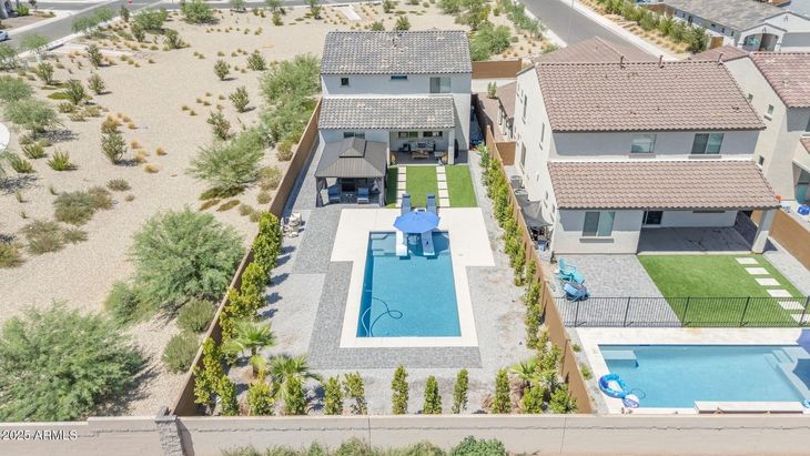 Looking for brand new, but don't want to wait to build? Come check out this Taylor Morrison model perfect home that is less than a year old, located in the fantastic Master Planned Community of Stonehaven! This home is just literally walking distance from Cardinals Stadium and the ever growing Westgate Entertainment District in Glendale! Wait until you see this amazing private, huge backyard complete with brand new pool, paverstone patio, and gazebo. This oversized lot has nobody behind you, offering mountain views to the South and an open common space to the west, providing the ultimate in privacy! This four bedroom three full bath plus a bonus room is a fantastic floor plan... The open kitchen entertainment area is perfect for the family or for entertaining... There's an oversized kitchen island with a breakfast bar and granite countertops. The upgraded shaker cabinets, upgraded tile backsplash, Stainless steel appliances and walk in pantry are highlights to this fantastic kitchen. On the main floor, there is a bedroom and a full bath, which is perfect for guests or teenagers... Upstairs, there is a primary bedroom with double vanity and large walk-in closet, and two oversized linen storage closets... There are two other secondary bedrooms and a large hall bath, but there is also an oversized bonus room/loft, which would be great for a play area, exercise room, or another office... But the real star of this home is the amazing backyard... what a place to relax or entertain... Extra deep, with lush landscaping around the perimeter, and artificial turf for easy maintenance, this yard is beyond wonderful! Check out this oversized pool with a large Baja shelf for soaking in your lounge chairs. There is a huge gazebo for extra shade, or a place for your fire pit... this house is turnkey and ready for you to make it your own... All the furniture is available as well. what a great home in the fantastic growing entertainment District in Glendale!