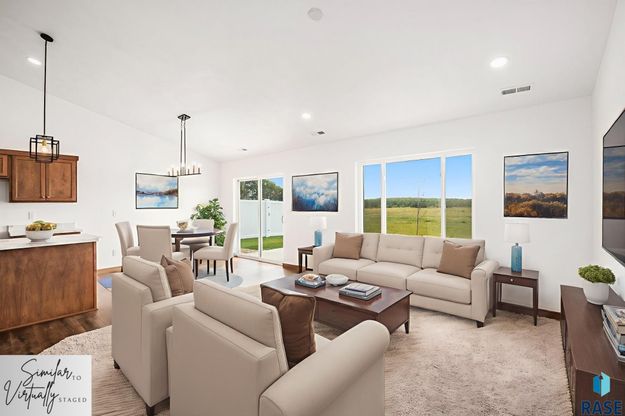 Welcome to Willows Edge and the Brookfield Townhome Plan, offering comfortable single-level living in a growing southeast Sioux Falls neighborhood. This thoughtfully designed 2-bedroom, 2-bath ranch-style townhome features a bright, open layout with excellent natural light and seamless flow between the living, dining, and kitchen areas-ideal for both everyday living and entertaining. The kitchen offers generous cabinet space, a center island, tile backsplash, and upgraded finishes that balance style and function. The primary suite includes a private 3/4 bath and walk-in closet, while the second bedroom provides flexibility for guests, hobbies, or a home office and is conveniently located near a full bathroom. An attached double garage adds everyday convenience and storage. Exterior landscaping is complete with sod, trees, rock, and a sprinkler system, making this home truly move-in ready. Interior finishes include LVP flooring, painted millwork, 3-panel doors, ceiling fan and plumbing fixture upgrades, and the price includes an appliance allowance. Enjoy a low-maintenance lifestyle with an HOA that covers lawn care, snow removal, and garbage service. Multiple finished and in-progress homes are available in Willows Edge, including townhomes, detached townhomes, and single-family options. As the on-site agents with extensive new construction experience, available in the neighborhood during model hours most days of the week, we here to help buyers confidently navigate options, timelines, and the new construction process from start to finish.