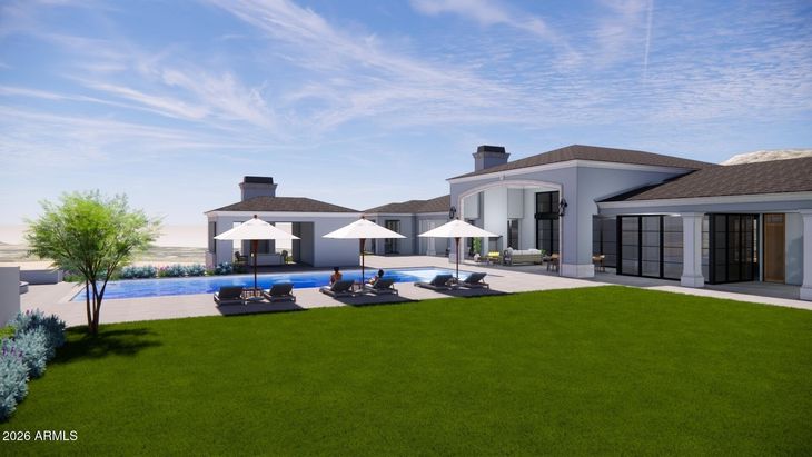 Amazing opportunity to purchase a Brand-New Luxury Estate in the highly desirable Silverleaf Upper Canyon community with spectacular Mountain and City Light views. This masterpiece was created by renowned architect Bing Hu and will be artfully crafted by Sommer Custom Homes. The home will sit on a pristine and tranquil 1.45-acre property with almost an acre of useable land providing expansive outdoor living areas and showcases a very functional 10,581 livable sq ft home with no steps on the main level floor and backyard areas. There is an additional 3,683 livable sq. ft. space in the walkout basement below for flexible space to be created for just about any purpose that is needed. The main level of the home offers 4 or 5 full bedroom suites, spacious Great room, Kitchen w/ two islands ...& large walk-in pantry, Breakfast nook, formal Dining room, Wine room, 2 powder baths, a huge Game/Entertainment room plus a separate Media room, a Golf Simulator room, two laundry rooms, mud room, and an Elevator to the lower level basement area. The Library/Office space can remain as is or it can be the 5th bedroom suite. The walkout basement is a very flexible space and can be used for many activities and purposes and includes a full bathroom, three car garage, and has interior main floor access by use of the elevator or the staircase. This walkout basement can be a full guest house with a separate bedroom and living space and kitchen if needed. It could also be used as a Wellness Center with a sauna, cold plunge, steam room, and there would still be plenty of space left for a large gym and other fitness uses. This space can also be used for a kids retreat & play area which could be designed into unique spaces for gaming, indoor sports, a movie room, reading room, game table areas, etc. Another use could be a Man Cave with a full bar, media area, collectables room, a variety of simulator equipment, additional wine storage, cigar area, and other adult game tables, etc. One more possibility is to use this entire space for additional climate-controlled car storage fitting up to a dozen or more cars on the floor and close to twice that if car lifts were used. The backyard has a gorgeous 60' x 24' pool with a separate hot tub and plenty of room for lounge chairs and a huge 50' x 80' lawn area on one side of the pool for lawn games, playground, and putting green, etc. with an additional 30' x 30' lawn area on the opposite side of the pool for additional uses. There are several covered patios across most of the rear of the home providing outdoor dining and entertainment areas with the largest patio opening up to the Great room through a 32' wide stacking door system making the two areas feel like one space when fully opened. Silverleaf, located in North Scottsdale, Arizona, is a prestigious guard gated community known for its luxurious estates, exclusive golf courses, private Club and stunning desert landscapes. The Tom Weiskopf-designed Silverleaf Golf Course is a highlight for golf enthusiasts. With a blend of Spanish and Mediterranean-inspired architecture, the community offers a high standard of living, including upscale amenities like spas, fine dining, and exclusive shopping. Residents enjoy a harmonious balance between modern luxury and the natural beauty of the desert environment, making Silverleaf a sought-after destination for those seeking an exceptional lifestyle in North Scottsdale.