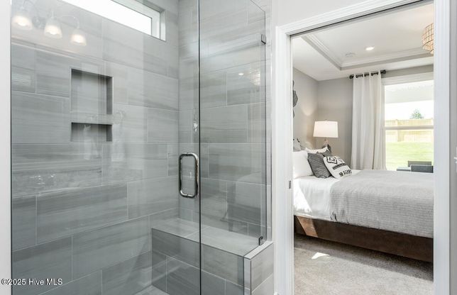 Welcome to The Haven at Riverlights, where modern design meets coastal charm. This beautifully crafted Compass floor plan offers 1,403 square feet of comfortable living space with two bedrooms, two full bathrooms, and a versatile flex room enclosed by glass doors. The home features a screened-in covered patio and an extended outdoor living area, creating the perfect setting for both relaxation and entertaining. The kitchen is a true centerpiece, showcasing upgraded quartz countertops, elegant burlap cabinetry, a white tile backsplash, bronze hardware, pendant lighting, and a spacious island ideal for meal preparation or casual gatherings. A sliding glass door opens from the main living area to the screened-in patio, seamlessly connecting indoor and outdoor living spaces. The owner's suite provides a peaceful retreat, enhanced by a tray ceiling and a luxurious bathroom with a dual-sink vanity, quartz counters, burlap cabinetry, and a beautifully tiled shower. At the front of the home, you'll find the second bedroom, a full bathroom with a tiled tub surround, and the flexible bonus room-perfect for a home office, hobby space, or guest area. Additional highlights include an extended two-car garage, upgraded flooring throughout, Smart Home technology with a programmable thermostat and video doorbell, a utility sink, and pull-down attic stairs for added storage. With thoughtful upgrades and a sought-after location just eight miles from Carolina Beach, this home offers the perfect blend of comfort and convenience! The Haven at Riverlights invites you to experience life by the water, and our on-site Sales Consultants are available seven days a week to guide you through our beautifully furnished model homes! Come and visit today!