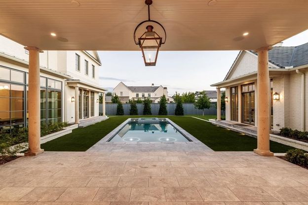 Located in the heart of Preston Hollow, 5610 Lobello Drive is a newly constructed Georgian-inspired estate by Pierce Jordan Development, blending timeless architecture with modern living. Set on a landscaped half-acre, the nearly 7,900 SqFt home offers refined design, classic proportions, and exceptional functionality. The residence features five bedrooms, six full baths, and two powder baths, with interiors finished in marble, limestone, and wide-plank wood flooring, complemented by custom cabinetry and hand-troweled plaster walls. The chef’s kitchen is equipped with Thermador appliances and marble countertops and opens seamlessly to gracious living and dining spaces. The primary suite serves as a private retreat with a coffee bar, marble floating tub, and expansive dressing room with an additional laundry closet. Additional spaces include a study, den, game room, and lounge with a bar. Outdoors, a 40-foot pool and spa, outdoor kitchen, and covered terrace accessed through an indoor loggia, create an ideal setting for entertaining and everyday enjoyment.