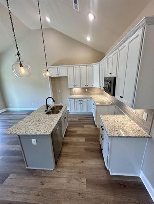 New Construction in South Haven Subdivision Welcome home to this beautiful new build brick home located in the desirable South Haven subdivision. Designed for both comfort and function, this one-level home features a split bedroom floor plan and a spacious open-concept layout perfect for everyday living and entertaining. The heart of the home offers a seamless kitchen, dining, and living area, complete with ample storage and a cozy gas fireplace. Each bedroom features a walk-in closet, while the primary suite impresses with a gorgeous walk-in tiled shower, double vanity, and generous walk-in closet. Enjoy outdoor living on the covered back porch with an additional side patio, ideal for relaxing or hosting guests. Added peace of mind comes with a 1-year builder’s warranty. This move-in-ready new construction blends quality, style, and thoughtful design—don’t miss the opportunity to make it yours!