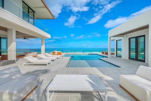 Just completed modern masterpiece on 170’ direct ocean frontage. 5br plus detached guest house nestled amidst state preserve for privacy yet minutes from "Hamptons of Fla", Vero Beach. Floor-to-ceiling glass allows natural light and ocean views throughout. Interior unites with elevated pool deck ideal to host large gatherings. State of the art gourmet kitchen with Sub-Zero and Wolf appliances, butler’s pantry, seated island, wine refrigerator. Master suite with sunrises over the ocean, sunsets over the bay, sitting room, office, two walk-in closets, private balcony. With 168 pilings, a concrete roof an engineering marvel built to endure. Also features private beach walkway with gazebo, elevator, multi floor laundry rooms, wet bar, space for gym, outdoor shower, jacuzzi, 2500+ sq ft. garage.