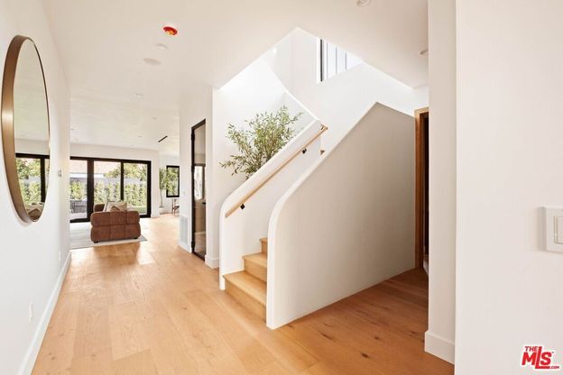 On a quiet street in coveted Del Rey, adjacent to Mar Vista, this newly built, move-in ready Japandi-inspired home by Jacobson Builders Group effortlessly blends elevated design with modern functionality. Offering 4 bedrooms, an office/flex space, and 4.5 bathrooms, this custom home with luxury finishes is crafted for both quiet daily living and sophisticated entertaining. The main floor features high ceilings, a sleek direct-vent fireplace, and expansive sliding doors that create seamless indoor-outdoor flow to the backyard with turf area. Flooded in natural light, the chef's kitchen features Thermador appliances, a large walk-in pantry, Taj Mahal stone countertops, custom oak cabinetry, and designer lighting, anchoring the open living and dining areas. Rounding out the downstairs is a large bedroom with ensuite bathroom as well as a flex room that can serve as a bedroom, office, or secondary living room with beverage fridge, vanity bar, and French doors. Upstairs, the primary suite with vaulted ceilings provides a private balcony, spa-inspired bathroom with freestanding tub, dual showers, custom vanities, and a spacious walk-in closet. Two additional ensuite bedrooms feature custom finishes and refined bathroom details throughout. Additional highlights include triple-pane custom aluminum windows and sliders, integrated speaker system, dual HVAC, wine room, large laundry room with custom cabinetry, wired security system, and a two-car direct-access garage with EV-ready plug-in. The fully gated exterior features drought-resistant landscaping and a blend of cement and cedar siding. Primely located in one of the most sought-after enclaves on the Westside of Los Angeles with central proximity to the restaurants, shopping, and entertainment in Marina del Rey, Venice, and Santa Monica, this turnkey home is not to be missed.