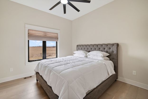 Nearly 4,000 sq ft of luxurious finished space in Grimes within sought-after Johnston Schools! This stunning ranch offers 6 bedrooms, 4 baths, and elevated finishes throughout. The custom kitchen features high-end appliances, maple cabinetry with soft-close drawers, waterfall island, Taj Mahal Premium Quartzite (in kitchen and main suite/bath), frosted glass cabinets with lighting, modern hood, and a spacious butler's pantry with fridge. Expansive dining area and living room showcase 10' ceilings and a porcelain fireplace surround. Two fireplaces (one on each level) add warmth and style. The finished lower level includes a full bar, high-end carpeting, 9' ceilings, and additional flex space for a gym, office, or storage. All bedrooms offer custom walk-in closets. The primary suite includes heated floors in the bath, shower, and closet, dual sinks, and a porcelain shower. Covered deck, mudroom, walk-in laundry with sink (washer/dryer included), water softener, high-end blinds and lighting, and an oversized 3-car garage with upcoming epoxy flooring (Vittara Crystal Quartzite in the laundry and 3 baths). Situated on nearly 1/3 acre! All information obtained from seller and public record.
