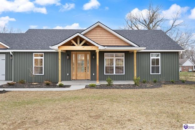 Welcome to brand new construction in the heart of Green County, built with quality, efficiency, and thoughtful design in mind. This 3-bedroom, 2-bath home offers custom craftsmanship throughout, featuring a beautifully designed custom kitchen with matching cabinetry and countertops carried seamlessly into the bathrooms and laundry room for a cohesive, high-end look. Luxury vinyl plank flooring flows throughout the home, complemented by 8-foot interior and exterior doors, custom windows, and an electric fireplace that anchors the main living space. Designed for comfort and efficiency, the home includes gas heat, a tankless gas water heater, spray foam insulation, and the option for an electric or gas stove. The attached two-car garage provides convenience and storage. Located on a quiet dead-end street inside the city limits of Greensburg, this home is just minutes from the popular Bluff Bloom Trails bike park, Green County Schools, and the new Jane Todd Crawford Hospital. Greensburg continues to grow as one of Kentucky’s most welcoming small towns; offering modern amenities while preserving its close-knit community charm. Recently under contract before listing and unfortunately that sale fell through due to a buyer job change. The home has already completed VA loan appraisal and home inspection, providing added confidence and peace of mind for the next buyer. Move-in ready and built with intention schedule your showing today. Agent is owner.