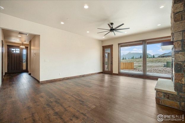 Looking for that brand new, low maintenance ranch-style sanctuary in the heart of idyllic Estes Park? Look no further than this thoughtfully designed 1,904-square-foot home that boasts open-concept living, three spacious bedrooms, two and a half luxurious bathrooms, and elevated finishes throughout. Step into the heart of the home and find a chef-inspired kitchen with a large island, quartz countertops throughout, soft close cabinetry, and stainless steel appliances. The expansive living area is adorned with large floor to ceiling picture windows, flooding the space with natural light. Step outside onto the oversized back patio and cozy up by the double sided- indoor/outdoor fireplace as you soak in the fresh mountain air. Located just minutes from Estes Park's charming downtown, Rocky Mountain National Park, and endless outdoor recreation, this home combines convenience and easy access to mountain tranquility. Don't miss your opportunity to own this one-of-a-kind property in the coveted Wildfire Homes subdivision. Contact us today to make this mountain dream home yours! * Builder and Bank of Estes Park are offering buyers an incentive to cover select closing costs, saving thousands! Home is currently under construction - listing photos are of a completed home with the same model/floor plan. Finishes will differ from photos.*