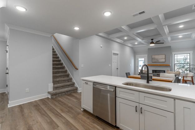 New construction one-level townhome in gated community with yard maintenance included! As you step inside the entry you'll find the guest bedroom and full bathroom right up front, providing separation from the master suite. Take a few more steps into the wide open living room, dining area and living room with gas fireplace, coffered ceilings and hardwood floors. The kitchen features a large eat-up peninsula, stainless steel appliances and beautiful white counter tops. The spacious master suite has a tray ceiling, double vanity, walk-in tile shower and walk-in closet. Outside you'll find a nice sized covered patio with uncovered grill space. This unit also features a laundry with cabinets for extra storage, a one car garage and oversized driveway with room for 2 more vehicles. Upstairs you'll find a large attic for storage without having to climb a ladder! Sunset cove is a gated community where the HOA handles the yard and is located just minutes to shopping, dining and health care in East Ridge or Fort Oglethorpe!