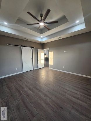 Stunning new construction with modern farmhouse charm! Features an open-concept layout, quartz island kitchen with custom cabinetry and designer lighting, and sleek matte black fixtures throughout. Spa-inspired bathrooms include vessel sinks and a walk-in tiled shower. Eye-catching exterior with board-and-batten siding, stone accents, exposed wood beams, and a modern black garage door. Move-in ready!