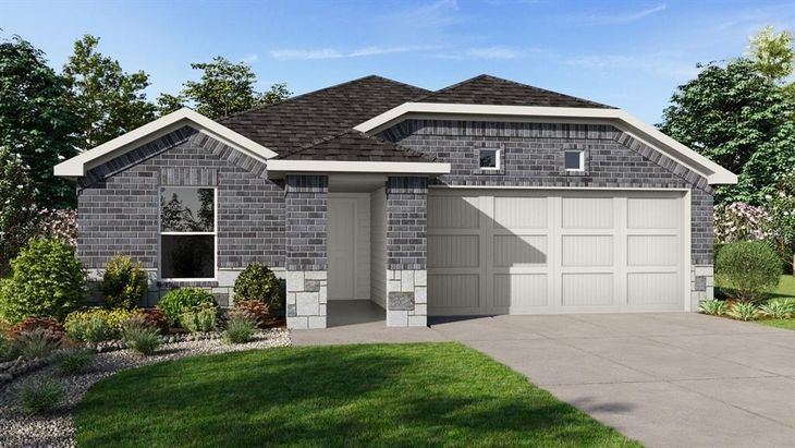 D.R. Horton America's Builder since 2002 is excited to serve as your new home builder in Monarch at the Meadows, a fabulous unique master planned community in Denton and Krum ISD! The Ellis plan elevation-C, with an estimated Summer completion, is a thoughtfully designed single-story home offering approximately 1201 sq. ft. of living space with 3 bedrooms and 2 bathrooms. A welcoming front porch and foyer lead into an open-concept layout that brings the kitchen, dining area, and family room together into one bright, cohesive space. The kitchen features stainless steel appliances, a centrally located sink with views toward the living areas, and convenient access to the dining space for easy entertaining. The private primary suite is tucked at the rear of the home and includes a walk-in closet and a full bath. Two additional bedrooms are located near the front, each with its own closet and easy access to the secondary bathroom-ideal for families, guests, or a home office setup. A dedicated laundry room and direct access to the two-car garage adds everyday convenience, while the rear stoop offers a simple outdoor retreat. With its efficient layout and modern features, the Ellis delivers comfort, functionality, and value in a smart single-story design. Additional features include: tank water heater; Luxury vinyl flooring at Entry, Hallways (per plan), Kitchen-Breakfast, Utility and Bathrooms; and, full yard sod, landscaping and irrigation. Includes the America's Smart Home Technology base package. Using one central hub that talks to all the devices in your home, you can control the lights, thermostat and locks, all from your cellular device. Situated conveniently near Highway 35 and Highway 380, Monarch at the Meadows provides easy access to key roads, making it ideal for commuting and exploring the surrounding areas.