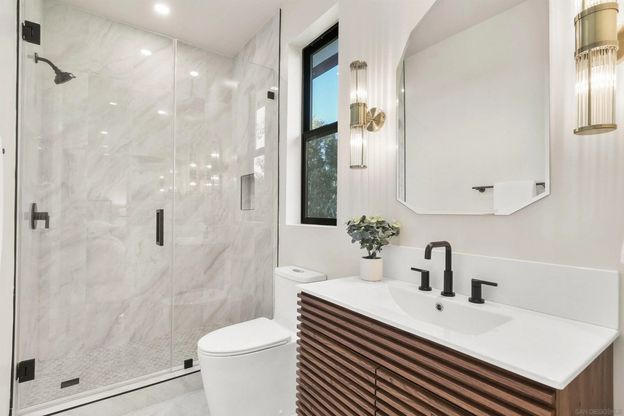 Brand-new Bay Park construction for buyers who want big, modern, and dialed-in. The main home features a sleek chef's kitchen with white oak cabinetry, quartz counters, a 6-burner Dacor range, and a hidden butler's pantry with its own sink, fridge, and dishwasher-perfect for entertaining. Warm finishes, designer lighting, and a custom wood-slat accent wall add upscale coastal character. The layout includes four en-suite bedrooms, with a standout primary suite offering a spa-style bath, soaking tub, oversized rain shower, and walk-in closet. A large private front yard creates an inviting yet discreet entry, while the upstairs decks captures Bay Park breezes and sunsets. An enlarged two-bedroom ADU with its own private entrance off the paved alley adds major flexibility for multigenerational living, rental income, or guests, all with elevated views. Energy-efficient upgrades include solar with battery backup. All of this just a short walk to restaurants, coffee, bars, and everything Bay Park has to offer.