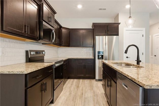 Welcome to HAMMONS LANDING where Affordability meets Comfort and Style. This is low maintenance living at its best! You will find this Jeffersonville patio home community tucked into a prime location with easy access to shopping, restaurants, medical facilities, interstate access and the East End Bridge. Hammons Landing boasts upgraded features that come standard, like granite countertops, tiled backsplashes, ceramic tile bathrooms with large tiled walk-in showers, luxury vinyl plank flooring throughout the common areas, a full complement of stainless-steel kitchen appliances, back patio with side privacy fence panel and MORE! Offering options for full customization of selections and finishes depending on the state of completion of each home. This floor plan offers 2 bedrooms and 2 full bathrooms. HOA includes lawn and landscape maintenance. The seller is a licensed Real Estate Agent in the state of Indiana. One listing agent is related to Builder. Call to make Hammons Landing your HOME today!