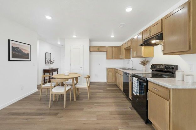 Experience effortless living in this beautifully designed 3-bedroom, 2-bath home! Spanning 1,085 sq ft, this residence maximizes space and functionality. The bright, open living area is filled with natural light from a sliding door, offering a welcoming atmosphere. The kitchen boasts a smooth-top range, dishwasher, and a nearby pantry, perfect for daily convenience. Relax in the primary suite, complete with a walk-in closet and private bathroom. With a 2-car garage and a stackable washer/dryer closet, this home combines comfort and practicality, ready to meet all your needs!