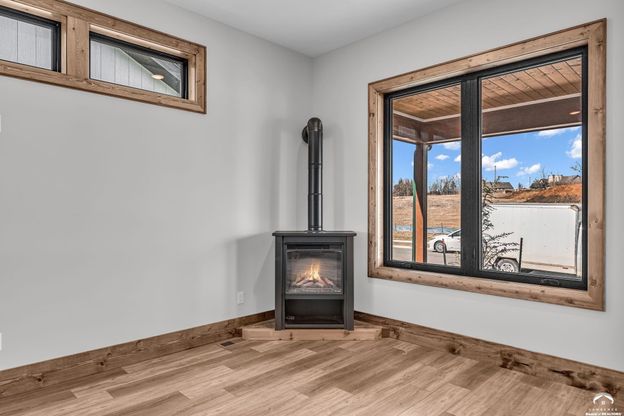 Welcome to this modernized mountain-style bungalow where warm craftsmanship meets open, airy living. Rich stained woodwork and soaring high ceilings create an inviting atmosphere throughout. The sun-filled sunroom offers the perfect space to relax year-round, while the country kitchen-featuring custom cabinetry and a large pantry-opens seamlessly to the living room for effortless entertaining. An electric wood stove anchors the living space, adding both ambiance and comfort. The main bedroom is a private retreat with a spa-inspired dual-head shower. Thoughtfully enhanced with newly added 20-30 foot trees along the back lot line, the home offers exceptional privacy and a peaceful natural backdrop. This property is located in Beth's Ranch Addition in west Lawrence. Beth's Ranch has a Homeowners Association. The Association covers yard mowing and snow removal of the sidewalks, driveway and front walk. Seller is a licensed real estate agent and General Contractor for this property. Completion date estimated around end of march 2026