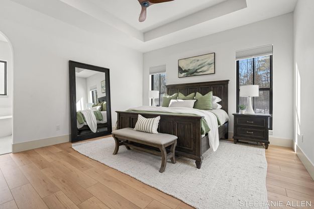 Complete in November 2025, this custom modern farmhouse sits on 8 private acres minutes from Spring Lake and Lake Michigan. Offering 5 bedrooms and 3.5 baths, the thoughtfully designed layout features 10 foot ceilings, 8 foot solid core doors, and a spacious primary suite with an oversized tiled shower and freestanding soaking tub. The designer kitchen showcases Lumitaj countertops, smart appliances, statement lighting, a butler pantry, and an oversized island with generous storage and seating. Expansive front porch living and a covered rear patio / outdoor kitchen create seamless indoor outdoor entertaining. A circle drive and 3 stall garage enhance curb appeal. Built on a poured foundation with heated and cooled crawlspace, generator wiring, and a 12 x 20 outbuilding with 100 amp service. Room for recreation, wildlife, and peaceful country living close to amenities and the shoreline. A rare opportunity to own a nearly new custom home in an exceptional West Michigan setting.