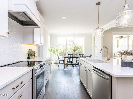 Introducing the ''Azalea'' floorplan by Homes by Dickerson. Ready in July, this 2,995 sq ft French Colonial home offers 4 bedrooms and 2.5 bathrooms. The main level features an inviting entry foyer, separate dining room with custom coffered ceiling, private study, and a screened porch off the family room with sliding doors for seamless indoor/outdoor living. Upstairs, you'll find the primary suite, three guest bedrooms, and a dedicated laundry room. Additional highlights include quartz countertops, custom built-ins, and a sealed crawl space for enhanced efficiency and comfort. Located in The View, just minutes from the new Latta Park with Publix under construction, and conveniently within 20 minutes of Duke University and Duke Hospital and approximately 30 minutes to RDU Airport.