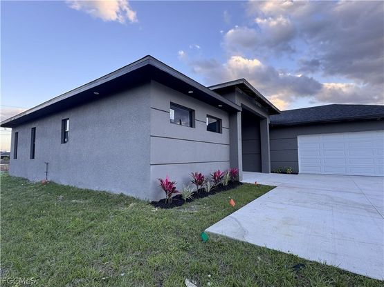 Stunning New Construction Custom Home in Lehigh Acres!! Welcome to this brand-new custom-built residence located in one of the area's most rapidly growing communities. Home is almost completed just wrapping up few final touches. Designed with both elegance and functionality in mind, this home offers impressive curb appeal with a beautiful architectural elevation that sets the tone for what's inside. Step through the grand double 8-foot entry doors and experience soaring high ceilings, 8-foot interior doors, and a bright, open layout that creates an immediate sense of space and sophistication. The home features large-format porcelain tile flooring throughout, complemented by raised baseboards that add a refined, modern finish. The heart of the home is the expansive open-concept living area, perfect for entertaining and everyday living. The kitchen showcases upgraded all-wood cabinetry with soft-close hardware, a complete stainless steel appliance package, quartz countertops, and a layout that seamlessly connects to the main living and dining spaces. Every detail was thoughtfully selected to deliver a warm, luxurious, and inviting feel, blending modern design with timeless comfort. Whether hosting gatherings or enjoying quiet moments at home, this property offers the ideal balance of style, quality, and livability. Perfectly positioned in a fast-growing area with new construction surrounding, this home represents an exceptional opportunity for buyers seeking quality craftsmanship and long-term value.