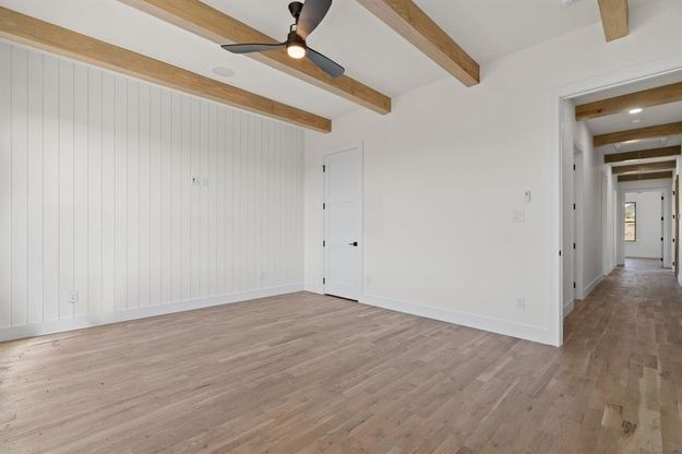 Stunning new construction home situated on over 2 acres in an exclusive gated community, offering the perfect blend of luxury and privacy with a modern farmhouse design. This single-story masterpiece features an open-concept floorplan with 5 bedrooms and 3.5 bathrooms, thoughtfully designed for both everyday living and entertaining. Custom double entry doors welcome you into a light-filled interior showcasing beautiful white oak wood flooring throughout. The spacious living room impresses with vaulted ceilings, wood beams, and a floor-to-ceiling stacked stone fireplace flanked by custom built-ins. Expansive picture windows flood the home with natural light and provide serene views of the surrounding acreage. The chef’s kitchen is a true showpiece, featuring custom cabinetry, a large island, quartz countertops, a gas cooktop, and a walk-in pantry. The private owner’s suite continues the elevated design with wood beam accents and a spa-like ensuite complete with a freestanding soaking tub, oversized walk-in shower with dual shower heads, and a custom walk-in closet with built-ins. All secondary bedrooms offer walk-in closets, and the versatile fifth bedroom can easily serve as a game room or flex space. A dedicated office with French doors and built-ins provides the perfect work-from-home setting. The spacious laundry room includes a sink and abundant cabinetry for added convenience. Additional upgrades include security cameras, surround sound system, Christmas light outlets, mud room, and water softener. Step outside to a covered patio overlooking the expansive Texas-sized backyard. A long driveway and 3-car side-entry garage complete this exceptional property. Experience luxury country living with modern amenities—all within the privacy of a gated community.