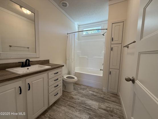 Welcome to this Clayton Home in the Village of Calabash, featuring the popular Southern Belle floor plan. This 3-bedroom, 2-bath home offers a cozy, covered porch that welcomes you into the open concept interior. The bright, modern kitchen is a showstopper with a central island perfect for meal prep or seasonal displays, fresh white cabinets, wood-style countertops, and rustic open shelving for your favorite pieces. As you move to the front corner of the home, you'll step into the primary bedroom, filled with natural light from its many windows, making it a bright and relaxing retreat. The primary bathroom complements the suite with sliding barn doors, a spacious walk-in shower, and a double vanity. As part of this community, you'll enjoy access to a pool, playground, and clubhouse, all just minutes from the seafood, shopping, and beaches that make Calabash so special.