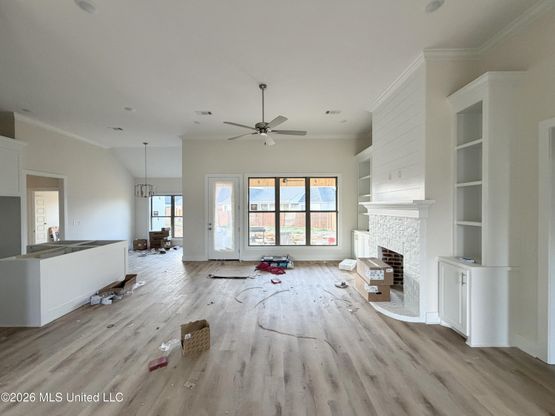 This one truly stands out. Scheduled for completion in early April, this unique 4 bedroom, 3 bath new construction home in the gated Kensington community offers a design that feels both stylish and timeless. The classic white exterior with a welcoming front porch and side entry garage creates beautiful curb appeal, while inside you will find a thoughtfully designed open floor plan with detailed trim work that adds character and style throughout the home. The living area features built-ins surrounding the fireplace and flows easily into the kitchen, which includes an island, gas cooktop, and a spacious walk-in pantry. Just off the kitchen you will find both a breakfast nook for everyday meals and a separate formal dining area that works perfectly for gatherings. The laundry room offers abundant cabinet storage and a built-in hanging rod, and it connects directly to the primary closet, a convenient feature that homeowners appreciate. The primary suite features a tray ceiling in the bedroom and a private bath with beautiful tile work in the shower that complements the overall design of the home, along with dual vanities and a walk-in closet. On the opposite side of the home are three additional bedrooms and two full baths, including a hallway bath and a Jack and Jill bath shared between two of the bedrooms. Out back, a large covered patio provides a comfortable space to relax and enjoy the outdoors. Photos will be updated soon to show construction progress, so be sure to check back for updated pictures as this home comes together. Kensington is a beautiful gated residential community offering amenities such as a stocked lake, swimming pool, and clubhouse, and is conveniently located just minutes from the Ross Barnett Reservoir and the shopping and dining at Dogwood Festival Market, all within the Northwest Rankin School District.