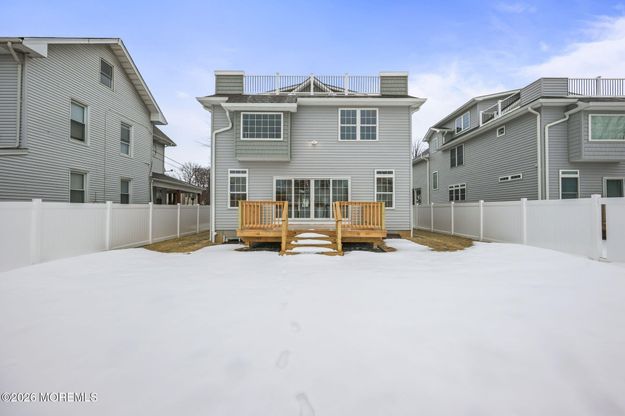 Brand new construction just a few blocks from the beach in sought-after Long Branch. This beautifully designed home features an open-concept floor plan on the main level with abundant windows that fill the space with natural light, along with hardwood floors throughout and Cat 6 wiring for modern connectivity. The main level also includes a convenient laundry room and direct access to the one-car garage. The second floor offers four spacious bedrooms and two guest bathrooms, along with an opulent primary suite complete with a walk-in closet and a spa-like bath featuring a double vanity, shower, soaking tub, and private water closet. The finished third floor provides additional flexible living space including a recreation area, office, full bathroom, and abundant storage, plus access to a stunning rooftop deck perfect for enjoying coastal breezes. The home also includes a full partially finished basement with two window wells, offering excellent potential for two legal bedrooms or additional living space. Outside, enjoy a fully fenced yard with a large deck ideal for relaxing or entertaining. Located close to the beaches, Pier Village, the train, shopping, and dining, this home offers the perfect blend of modern living and coastal convenience.