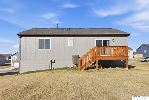 Courtney Goodman, M: 402-517-1227, Courtney.Goodman@bhhsamb.com, https://www.bhhsamb.com - Why wait 8–10 months to build when you can enjoy the peace of mind of a nearly new home RIGHT NOW! Just one year young, this stunning Celebrity Homes Santee model—built JUST LAST YEAR—features crisp exterior lines and stylish modern design throughout. The open, bright, & airy main level welcomes you with vaulted ceilings, luxury vinyl plank flooring, and a spacious, connected kitchen complete with stainless steel appliances, quartz countertops, and modern lighting. Relax by the sleek electric linear fireplace or step out onto the deck overlooking the large backyard—perfect for entertaining or quiet evenings at home. The home offers 3 bedrooms, including a primary suite with a ¾ bath, plus a finished lower level that adds valuable living space for a family room, office, or workout area. With a 2-car garage, sprinkler system, and thoughtful finishes throughout, this move-in-ready gem delivers all t