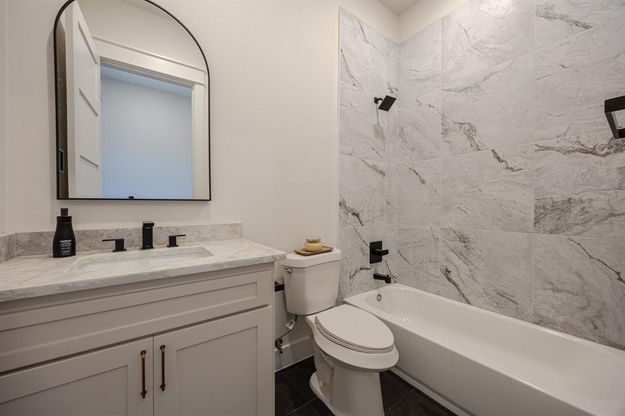 Stunning 2026 New construction modern farmhouse 4 bedroom, 3 full bathrooms featuring designer finishes, an open concept layout, and exceptional craftsmanship throughout. The striking exterior showcases dark board and batten siding with brick accents, creating a bold yet timeless curb appeal. Step inside to a welcoming foyer with high ceilings and abundant natural light that leads into a spacious living area highlighted by vaulted ceilings and exposed wood beams, creating a warm and elegant atmosphere. The open floor plan seamlessly connects the living room, dining area, and kitchen perfect for both everyday living and entertaining. The chef inspired kitchen offers quartz countertops, a large island with seating, custom cabinetry, stainless steel appliances, and ample storage space. Thoughtfully designed finishes and modern fixtures elevate the space while maintaining a comfortable and functional layout. The primary suite serves as a private retreat with a spa style bathroom featuring dual vanities, a large walk in shower with designer tile, glass enclosure, and modern black fixtures. Secondary bedrooms are spacious and versatile for guests, family, or a home office. Additional highlights include luxury vinyl plank flooring, modern lighting, and an attached garage. The home also features a private backyard, ideal for relaxing or entertaining outdoors. Conveniently located near downtown Fort Worth, major highways, dining, and shopping, this home offers both modern style and everyday convenience. Move in ready and built with quality craftsmanship schedule your showing today.