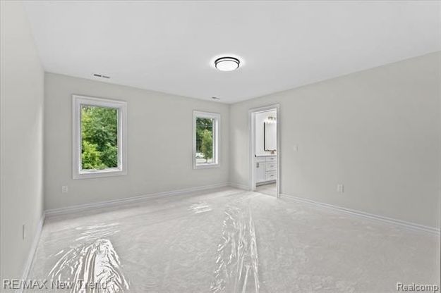 Step into luxury with this stunning brand new home in Farmington Hills, perfectly situated on a beautifully landscaped corner lot with a walkout basement and ready for immediate occupancy. This custom built residence features a three car side entry garage and impressive curb appeal with a striking brick, stone, and Hardy Plank exterior. Pella windows throughout the home bring in abundant natural light while offering quality, style, and energy efficiency. Inside, you’ll find soaring ceilings, including a dramatic two story ceiling in the family room, rich hardwood flooring throughout the first floor, and exquisite decorative woodwork and molding that add timeless elegance. A main floor office provides the perfect space for working from home and could also double as a second sitting room or entertainment area. Off of the garage, there’s a spacious mudroom with a built-in bench, perfect for organizing coats, bags, and shoes. Nearby, the main floor laundry room features decorative tile flooring, cabinetry for storage, a countertop for folding, and a convenient sink. The family room is centered around a cozy gas fireplace, while the chef’s kitchen dazzles with two-tone cabinetry, quartz countertops, a huge island, a super cute tile backsplash, stainless steel appliances, darling hardware on the cabinets, and a massive walk-in pantry. The main level primary suite offers a private retreat with a deluxe bath that includes dual sinks, a dedicated makeup area, a large tiled shower, and a generous walk-in closet. Upstairs, all additional bedrooms have access to a bathroom, offering both comfort and convenience. This luxury home comes complete with a one year builder warranty, providing peace of mind for its new owners.