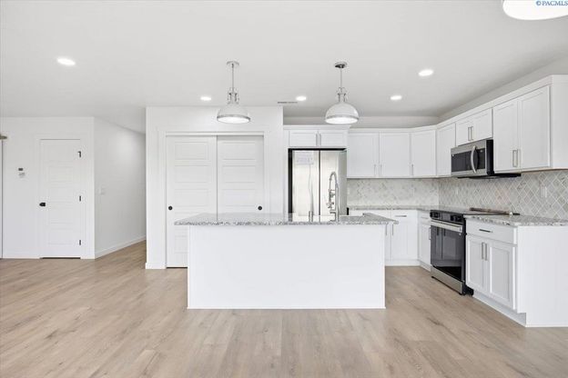 MLS# 291131 Welcome to your brand-new home in West Kennewick, built with pride by Muzzy Construction. This home is perfectly located directly across the street from the Desert Hills Middle School playfields, giving you a wonderful sense of open space and easy access to outdoor fun.Inside, you will find a great layout with 3 bedrooms and 2 bathrooms (all in 1499 square feet). The kitchen features gorgeous quartz countertops and custom cabinets that give plenty of storage. High-quality LVP flooring runs through the main living areas, providing a modern look that is also very easy to clean.The home includes a large 3-car garage, for those cars and extra gear (or just a lot of storage and leave the cars outside). When you want to head out back, you can relax on the covered back patio that stays shaded and comfortable throughout the day. This home is currently under construction (pictures are of another home completed recently in the same neighborhood - shows what great finishes are put into this home), which means you get to be the very first person to live init. It combines a great location with high-end finishes that make it stand out from the rest. Don't miss your chance to own a quality home in a fantastic neighborhood. Welcome home to Talon Heights!