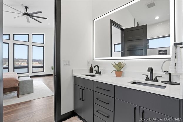 Panoramic main channel views of the Osage 24MM while also having a COVE protected dock! This NEW build estate is designed for luxury entertaining & refined everyday living. Encompassing 9,153 sq ft under roof, property includes 5,431 sq ft of sophisticated living space & an impressive 3,722 sq ft heated/cooled garage; ideal for showcasing cars, boats or the ultimate entertainment lounge. Interior features a chef's kitchen with a 64" side-by-side refrigerator/freezer, waterfall granite island & slab backsplash, designer lighting & a one-of-a-kind floating metal staircase w/ wood treads--following the natural curve of the trunk going up the staircase. Primary suite is a private retreat with breathtaking lake views & a spa-inspired bath with marble flooring & a distinctive open shower / soaking tub concept & desirable walk-in closet w/ custom shelving. Outdoor living feels like a private resort with its 40x16 pool, hot tub, tanning ledges and fountains, covered cabana, stamped concrete, torch-lit pedestals surround pool deck, finished w/ a fire pit. Exterior finished in stucco & stone, a flat driveway, sought after location by land/water & a massive private dock. A true masterpiece...