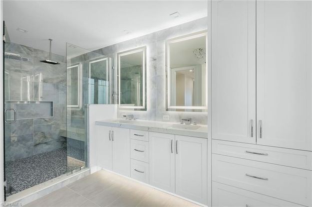 Discover Residence 201 at Gulfside Twelve offering a sophisticated second-floor vantage point where architecture, design, and the natural beauty of Estero Island come together in effortless harmony. Encompassing approximately 4,000 square feet of interior living space, the residence opens to a private Gulf-facing lanai of approximately 700 square feet, creating an elevated outdoor living experience where sunsets and coastal breezes become part of everyday life. Inside, the residence reflects a refined coastal palette anchored by European white oak wide-plank flooring from the Silvian Collection in the Taivas "Sky" finish, introducing warmth and texture throughout the primary living areas. Large-format stone and porcelain tile selections-including Imperial Onyx White, Atlas Concorde Fray in Gray, and Anthology Bella Tuscana surfaces-add architectural depth and subtle contrast within the baths and secondary spaces. The chef's kitchen is designed as a sculptural focal point while maintaining exceptional functionality. Custom cabinetry is paired with curated quartz selections including Valley Grey, Siena, Regalo, Augusta Bay, Nashville, and Santorini Honed, creating a layered composition of natural stone throughout the residence. A professional Thermador appliance suite includes a 36-inch Pro Harmony gas range, paneled refrigerator and freezer columns, wall oven, microwave, and integrated dishwasher. A walk-in pantry, wine refrigeration, and gourmet ice maker complete a kitchen designed for both elevated entertaining and effortless daily living. A contemporary Amantii Symmetry electric fireplace anchors the great room, while floor-to-ceiling impact sliding doors frame sweeping Gulf views and connect seamlessly to the expansive outdoor terrace. The primary suite is conceived as a private coastal retreat, offering a spa-inspired bath with dual vanities, sculptural stone surfaces, and an oversized walk-in shower finished with designer tile selections and integrated niches. Premium fixtures by Hansgrohe and Kohler, paired with curated lighting selections throughout the residence, introduce a subtle modern contrast to the warm coastal materials. Three additional guest suites with private baths, along with a flexible media or lounge space, provide generous accommodations for family and guests. Additional highlights include private elevator entry into the residence, a dedicated laundry room, two secured garage parking spaces, and private storage below the residence. Gulfside Twelve is an intimate beachfront enclave offering 180 feet of direct Gulf frontage, private beach access, and resort-style amenities including a pool, spa, cabanas, and outdoor grilling areas. Ideally located on the south end of Fort Myers Beach, the property sits just minutes from Lovers Key State Park, boutique shopping, and fine dining, with easy access to Bonita Springs, Naples, and Southwest Florida International Airport.