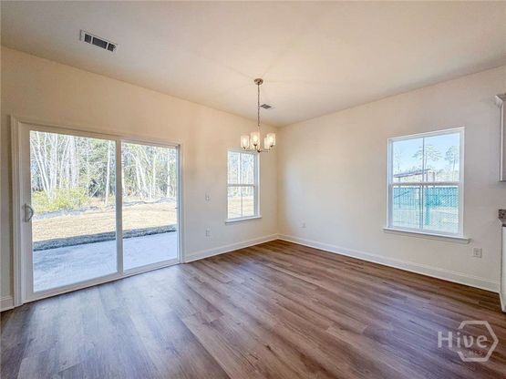 The Vivian Plan in Heritage Pointe! Discover this charming 3-bedroom home in Heritage Pointe, perfectly situated on the edge of Hinesville-close to new shopping & dining, local schools, and Ft. Stewart! Step inside the Vivian plan and find a welcoming entry foyer leading to two bedrooms and a hall bath with a stylish granite vanity. Convenient access to the garage and laundry room is just off the hallway for everyday ease. At the heart of the home, enjoy an open-concept living space featuring a cozy electric fireplace, dining area, and modern kitchen with crisp white cabinetry, granite countertops, and a large island overlooking the family room. Step outside to the patio and enjoy your fully sodded backyard-perfect for relaxing or entertaining. The primary suite, tucked just off the family room, offers a vaulted ceiling, walk-in closet, and a spa-like private bath with dual granite vanities, a soaking tub, and a separate shower. Estimated completion: December 2025