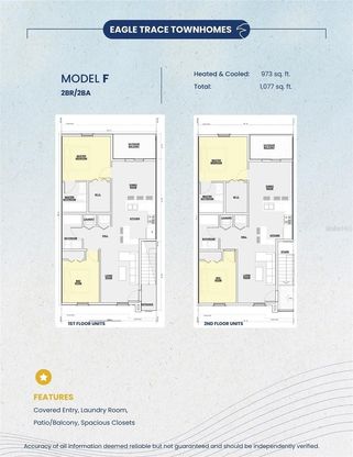 Introducing NEW CONSTRUCTION at Eagle Trace, just 2.3 miles from the University of Florida in the heart of NW Gainesville. The Model F offers a well-planned single-level layout featuring a welcoming covered entry, patio ideal for outdoor enjoyment, and large interior closets including an oversized walk-in closet in the master bedroom. Gourmet kitchen with quartz counters, custom soft-close cabinetry, and fully equipped with stainless steel appliances - including a refrigerator and freezer, smooth-top range, microwave, dishwasher, and garbage disposal. Double-pane windows, luxury vinyl tile wood-look flooring, elegant porcelain tile paired with quartz countertops in the bathrooms, and window blinds included too! Eagle Trace has a beautiful lake-view entrance, a pool, clubhouse, and fitness center—all with a low HOA fee. Each condo comes with a 1-year builder warranty. Seller is offering a $7,000 credit to the buyer at closing! Please note that the photos are of a recently completed model unit with comparable finishes, but may not reflect the specific floor plan of this unit. With quick access to UF Health Shands Hospital, UF campus, and Downtown Gainesville, this new construction condo offers the perfect blend of luxury, affordability, and convenience! The builder is Ark Development Group, Inc.