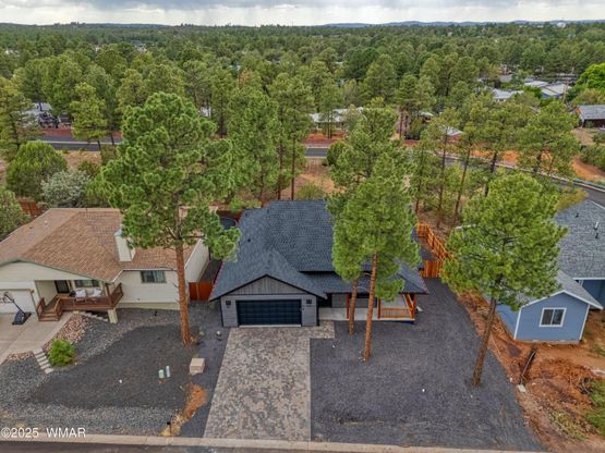 Welcome to this beautifully crafted new home located in the heart of Show Low, where modern convenience meets timeless mountain character. Thoughtful design and quality finishes are evident from the moment you arrive, with a paver driveway, rich wood accents, and a welcoming covered front porch creating standout curb appeal. Inside, the home offers a spacious open layout designed for both comfort and everyday living. The living area features a striking rock gas fireplace that adds warmth and character, while vaulted ceilings with beam accents create an open, airy atmosphere. Durable luxury vinyl plank flooring runs throughout the home, complemented by smart lighting for added convenience and efficiency. The kitchen is designed to be both functional and inviting, featuring stainless steel appliances, beautiful stone countertops, abundant cabinetry, and a generously sized walk-in pantry that offers exceptional storage. The seamless flow between the kitchen, dining, and living spaces makes entertaining effortless. The primary suite offers a relaxing retreat, complete with an oversized walk-in closet featuring custom shelving designed to maximize organization. A spacious laundry room with utility sink and additional work area adds practicality to the home's well-planned layout. Outdoor living is just as enjoyable, with both front and back porches showcasing attractive woodwork and providing comfortable spaces to unwind and enjoy the mountain setting. The backyard is fully enclosed with a tall wood privacy fence, offering plenty of room for pets, play, or private outdoor gatherings. An extra-wide and extra-deep garage provides excellent space for vehicles, storage, recreational equipment, or a workshop. With its combination of quality craftsmanship, modern features, and inviting design, this move-in-ready Show Low home offers a wonderful opportunity to enjoy comfortable living in a desirable location. Discover the White Mountains of Arizona--where adventure, beauty, and fresh mountain air come together. Enjoy four stunning seasons, 40 lakes, and 600+ miles of rivers and streams, perfect for fishing, kayaking, and exploring. Hit the trails on one of the largest trail systems in the Southwest, or spend winter days at Sunrise Ski Resort, just 40 minutes away with three mountains of skiing, snowboarding, and sledding. Love shopping or culture; wander through antique shops, summer arts & craft fairs, and lively music festivals. Golfers can tee off at seven scenic courses, including three public gems. It's no wonder Pinetop-Lakeside was voted the "Best Cabin Region in the U.S." The White Mountains--Arizona's best-kept secret. Come explore and embrace the MAGIC!