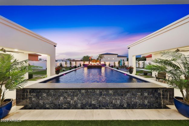 Luxury Desert Entertainer's Dream - No HOA! Designed for entertaining & indoor-outdoor living, this property features a 47' wall of sliding glass doors that open to breathtaking views of the resort-style backyard. Step outside to your private oasis with a sparkling pool, relaxing spa, and expansive patio space perfect for gatherings. Inside, the open-concept floor plan showcases spacious living areas, abundant natural light, and seamless flow between the kitchen, & great room. This home offers 4 bdrms, 3 baths, and 2 powder rooms, providing plenty of space for family and guests. The oversized 3 car garage and RV gate offer storage and flexibility for toys, & recreational gear. With no HOA, modern design & and high-end custom features, this one-of-a-kind property combines luxury & comfort! custom features throughout, this one-of-a-kind property combines luxury & comfort! Experience modern luxury living in this stunning custom home in Peoria!