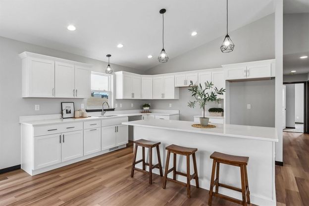 This BRAND NEW construction home located in a desirable neighborhood w/ easy access to I-80 offers a spacious and modern living experience. The 5-bedroom home boasts soaring vaulted ceilings, Pella windows, neutral paint tones, & an open concept layout that creates an inviting ambiance throughout the property. The kitchen is a standout feature, w/ sleek white cabinetry accented w/ crown molding and soft close features, pantry closet, oversized island w/ seating, stylish quartz countertops, recessed lighting, & window above the sink that overlooks the backyard. The dining space is conveniently located adjacent to the kitchen offering a slider leading to the patio, perfect for entertaining. The tasteful vinyl flooring seamlessly flows throughout the main level, creating a cohesive look. The living room is enhanced by a picture window that fills the space w/ natural light, creating a bright & welcoming atmosphere. The oversized primary suite is a luxurious retreat, complete w/ a large walk-in closet, bathroom featuring a stand-up shower, & an elevated vanity w/ dual sinks for added convenience. There is an additional main level bedroom w/ a walk-in closet & full bathroom w/ a tub/shower & an elevated vanity. The sprawling lower level adds even more living space w/ a family room, 3 bedrooms & full bathroom w/ tub/shower.
