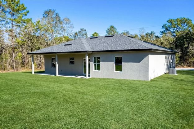 MOVE-IN READY NEW CONSTRUCTION! Welcome to your new home in the beautiful community of Citrus Springs. This 3 bedroom, 2 bath, 2 car garage home has the features that you're looking for: HIGH CEILINGS throughout the home, OPEN CONCEPT, SPLIT BEDROOMS, and QUARTZ COUNTERTOPS in the kitchen and baths. Upon entering through the double front doors, you will love the expansive feel of the open entertaining area, which includes a spacious living room and dining room, with a kitchen that includes KITCHEN ISLAND, PANTRY CLOSET, and SAMSUNG stainless steel appliances and lots of countertop space. Going left of the entertaining space, you will find the PRIMARY BEDROOM AT THE BACK of the home, with a large WALK-IN CLOSET, and an ENSUITE BATH that includes DUAL SINKS, a SEPARATE TOILET ROOM, and a HUMONGOUS SHOWER WITH 2 SHOWER HEADS controlled by separate valves. The laundry is located inside the home, between the primary bedroom and the garage. Moving across to the other side of the home, you will find 2 other bedrooms of very good size, separated by a guest bathroom that includes a tub and shower combination with tiled tub surround. Access the backyard and COVERED REAR LANAI through the sliding door in the dining room. Schedule your showing today and make this beautiful home yours!