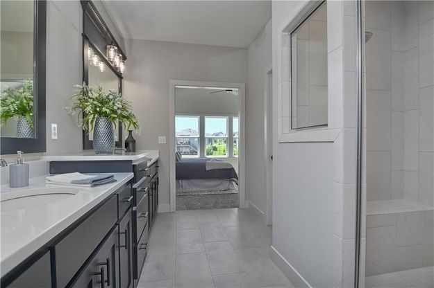 Prieb's Payton reverse 1.5 story plan situated on a corner lot in the growing community of Canyon Lakes - this walkout home uniquely features 3 bedrooms on the main level and an additional 4th bedroom in the basement. The finished basement includes a large rec room area as well as a door to the covered patio. The kitchen has a large island with a sink and quartz counter tops as well as a generous sized walk in pantry. The open kitchen has room for a dining table and looks out to covered deck. The great room has soaring ceilings and a stone fireplace flanked with built in cabinets and floating shelves. The Payton is a beloved reverse you will not want to miss!! Home to be completed summer 2026 - some photos of previously completed home of same plan.