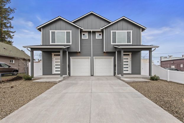 Live in one unit and rent the other - or secure an outstanding investment! This brand-new turn-key duplex is strategically located just minutes from Downtown, the University district & NorthTown Mall shopping, perfectly positioned for high occupancy. Each two-level unit offers a 3-bed/3-bath configuration, both with their own garages and private fenced backyards. With 1,500 sq/ft per unit, these spaces exceed the average Spokane rental size, providing a competitive advantage. The main level features a light-filled great room with ample seating & dining space for everyday living & entertainment. The kitchen provides quartz surfaces, tons of storage and stainless appliances. The dining leads out the backyard patio, perfect for relaxation & BBQs. Upstairs features a convenient primary suite with a walk-in closet and its own bath including a double-sink vanity, alongside two guest rooms, a full guest bath, and a dedicated laundry closet. Don't miss the chance to secure this premium new build in a prime location!