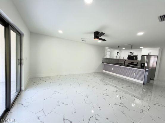 Experience the best of modern Florida living in this brand-new duplex, featuring separate entrances that each face a different street. This property has been designed to perfection, offering comfort, style, and long-term value. Each unit includes 2 bedrooms, a den, and 2 full bathrooms, providing flexibility with an extra room that can be used as an office, playroom, or guest space. Upon entering, you'll appreciate the elegant ceramic tile flooring throughout, coupled with a bright and open floor plan. The beautifully upgraded kitchen boasts premium quartz countertops, an exceptional detail that enhances the value of the entire property. Every aspect has been carefully considered to ensure durability, efficiency, and a fresh, contemporary aesthetic. Located in a prime area of Lehigh Acres, this property is just minutes away from shops, restaurants, schools, and major thoroughfares, making it an ideal choice for both homeowners and investors seeking strong rental demand. Best of all, there are no Homeowners Association (HOA) fees, and the property is not located in a flood zone, helping to keep your monthly costs low and providing complete peace of mind. This is a unique opportunity to acquire a brand-new, low-maintenance, income-generating property in one of Southwest Florida's fastest-growing markets. Properties of this nature sell quickly, so don't let this opportunity slip away!