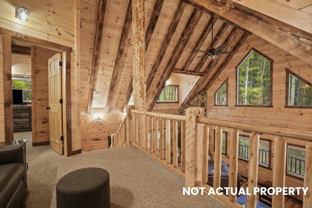 Luxury log cabin retreat in the heart of Hocking Hills! Situated on 5.58 private, wooded acres, this custom-built 3,000 SF cabin offers the perfect blend of upscale finishes, natural beauty, and income potential. Perched high on a scenic hillside, the property delivers breathtaking views and a true escape into nature--just minutes from Old Man's Cave, hiking trails, waterfalls, and all that Hocking Hills has to offer. Designed for both relaxation and entertaining, this cabin features 3 bedrooms, 4.5 bathrooms (one on each level), plus a large loft, and can comfortably sleep up to 12 guests. The stunning Great Room showcases soaring ceilings, floor-to-ceiling windows, and a stone fireplace, seamlessly connecting to expansive 12' wraparound decks. The chef's kitchen includes custom cabinetry, quartz countertops, island with additional seating and high-end finishes. The walkout basement offers a spacious rec/game room, a fully insulated media room, and an additional full bath--perfect for guests or rental use. Outdoor living is unmatched with a covered upper deck featuring a wood-burning fireplace, plus a 12'x16' gazebo with hot tub, connected by a unique 10' catwalk--ideal for entertaining under the stars. Additional features include a fire pit area with electric, EV charger, and premium 6-pane glass doors. Whether you're seeking a luxury getaway, full-time residence, or income-producing Airbnb/VRBO, this property offers space for a potential second cabin and endless possibilities. A member of the selling entity is a licensed Ohio Realtor. Exterior photos are renderings; interior photos represent similar finishes from builder's 2025 builds. A rare Hocking Hills opportunity--schedule your private tour today!