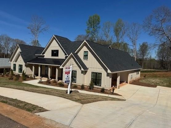 Custom Modern Farmhouse design in Sandy Creek golf course community in North Jackson County. This beautiful floor plan provides 4 bedrooms on the main level with a bonus and full bath on the upper level. The office and dining room great you upon entry into the impressive foyer that leads you to the Open concept which lays across the back of the home with picture windows, gourmet custom kitchen with quartz counters, pot filler, large island and double ovens. The living area offer wood style flooring, wetbar, accent walls recessed lighting along the trey ceilings. Primary suite provides peace and quiet in its own wing with a luxury bath offering a bidet, large tiled shower & separate stand alone tub. Secondary bedrooms on main with one ensuite with own entry. Large bonus room on second level with a full bath. This design provided covered porches flanking the front and back. Expected to be completed July 2026