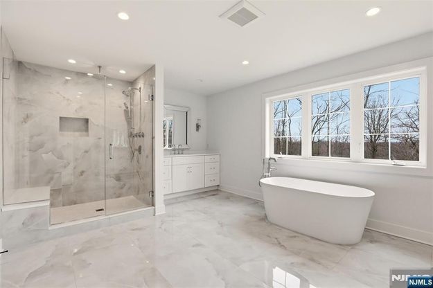 Welcome to this new construction luxury residence offering an unparalleled blend of modern design and thoughtful functionality. With approximately 7000SF of elegant living space, this expansive 6-bedroom, 5.5-bathroom home is situated on a generous 200 x 253 private lot. You’re greeted by a paver driveway and walkway that lead to a stately entrance. Inside, discover hardwood floors throughout, soaring ceilings, and a sophisticated open-concept layout designed for both comfort and entertaining. The heart of the home is a modern kitchen, featuring Sub-Zero and Wolf premium appliances, sleek cabinetry, and an oversized center island with quartz countertops. All six bedrooms are generously sized, each offering ample closet space. The luxurious primary suite includes a designer bath, 2 custom walk-in closets (1 which you could live in), and peaceful backyard views. The home also includes a full finished basement, ideal for a media room, gym, playroom, guest quarters, offering exceptional flexibility and additional living space.Enjoy year-round comfort with four-zone heating and air conditioning, ensuring energy efficiency and personalized climate control.Step outside to your private backyard oasis featuring a bluestone patio and beautiful landscaping for added privacy. Great schools, scenic parks, and convenient access to NYC, this exceptional property presents a rare opportunity to own brand-new construction in an established, sought-after community.