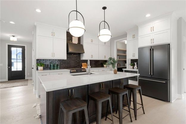 Experience luxury living at this stunning two-story home boasting a gourmet kitchen, five bedrooms, and an open-concept layout. The kitchen features a custom pantry complete with a convenient pass-thru grocery door, ample cabinetry, generous counter space and convenient layout for everyday living and entertaining. The great room offers a cozy gas fireplace creating a harmonious space for gatherings. Ascend to the luxurious owner's suite with a private bathroom and walk-in closet, while additional bedrooms and bathrooms cater to family and guests. The walk out lower level provides an entertainment zone with a family room, fifth bedroom, and bathroom, perfect for hosting movie nights and overnight guests.